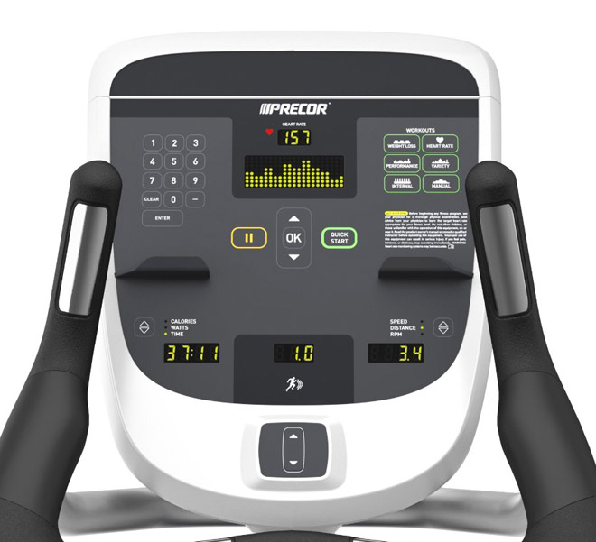 All of these precor bikes are Self Powered which means you don’t need to plug them in, as they have their own generator. The 815 Series Console, and the 835 Series Console use bright LED displays. Exercise bikes provide an excellent form of aerobic exercise at home that you can do no matter what the weather is outside. Exercise bikes are easier on your joints with less impact than other forms of cardio exercise, such as running. You can compare these Precor commercial exercise bikes below by features such as workout programs, reviews, maximum weight capacity, price, and other features. A glossary of terms is available at the bottom of this page.![]()